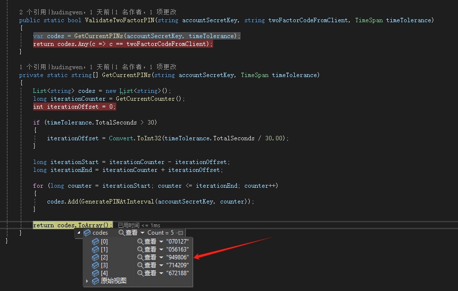 return GoogleAuthenticatorHelper.ValidateTwoFactorPIN("系统生成的key", code, TimeSpan.FromSeconds(step));