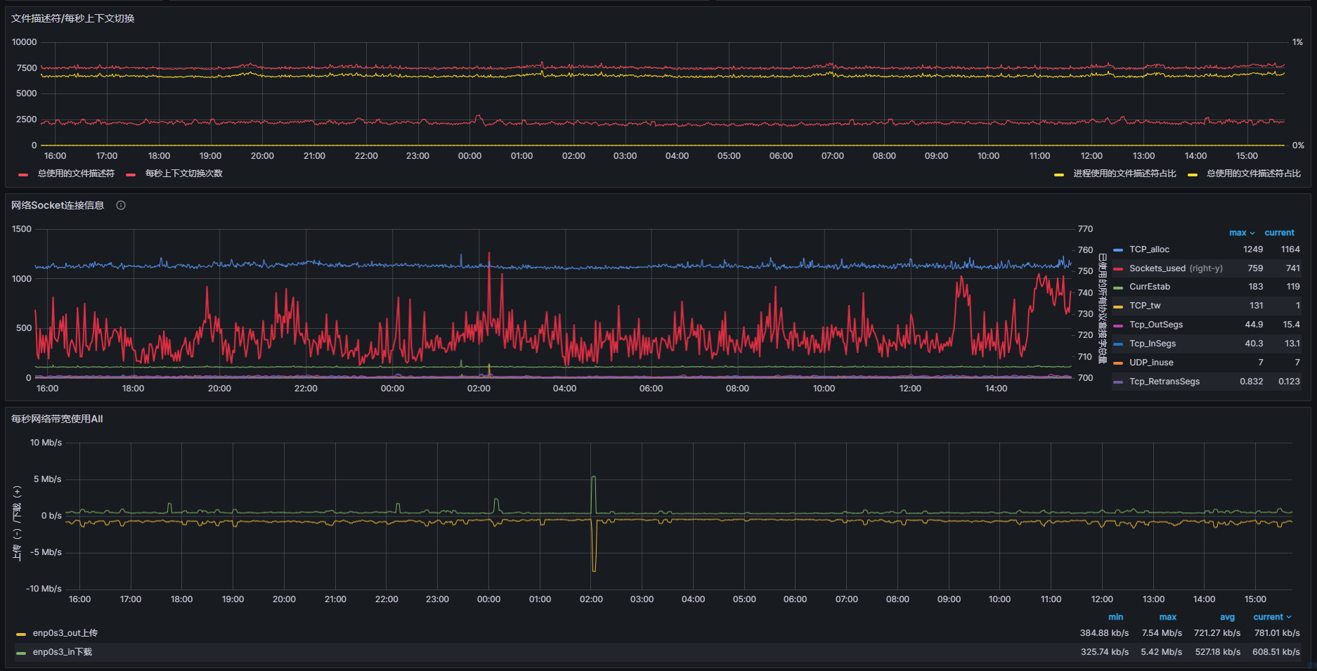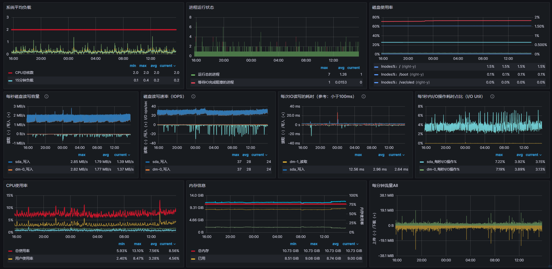 这是grafana面板的局部截图,一个整体系统资源总览,方便我们快速发现问题并检索,这也是我们日常使用最频繁的地点。
