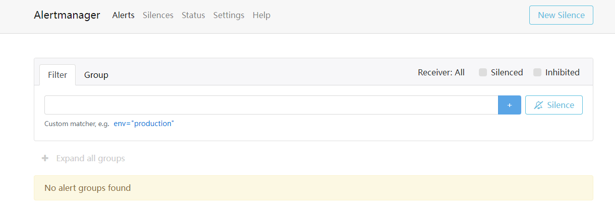 接下来就是alertmanager的截图,主要是接收prometheus触发的告警,alertmanager负责推送。