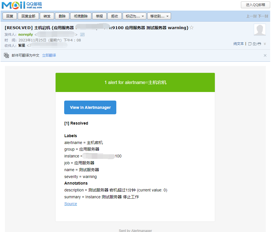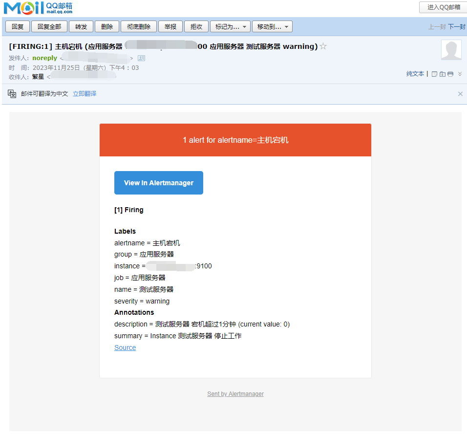 当然此刻已经收到邮件的告警提示