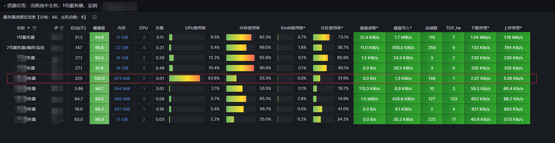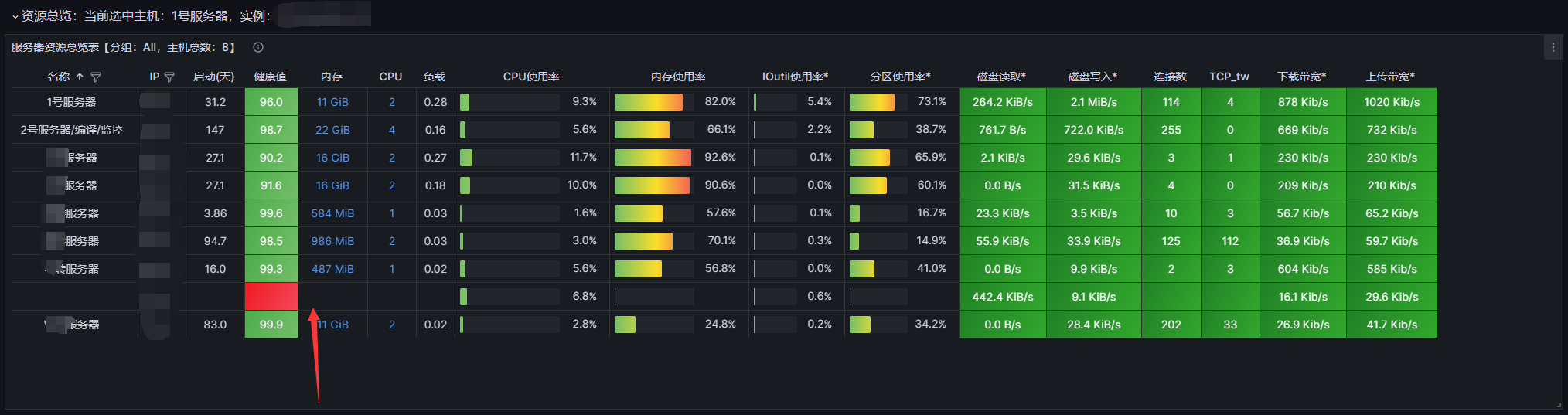 通过观察仪表盘,我们可以发现服务器中一些细微的问题,然后对其进行解决。