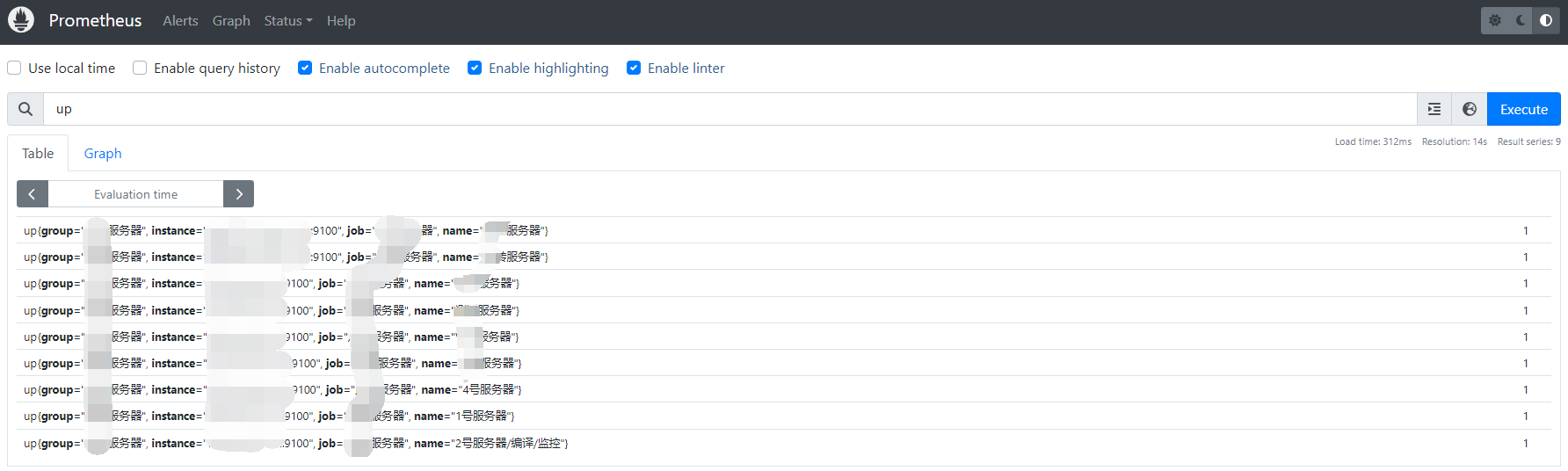 下面是prometheus的局部截图