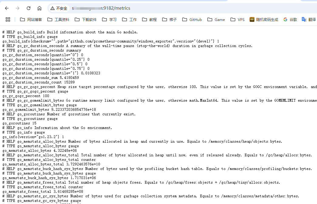 安装后本机直接访问9182端口加上metrics就可以直接访问到指标数据